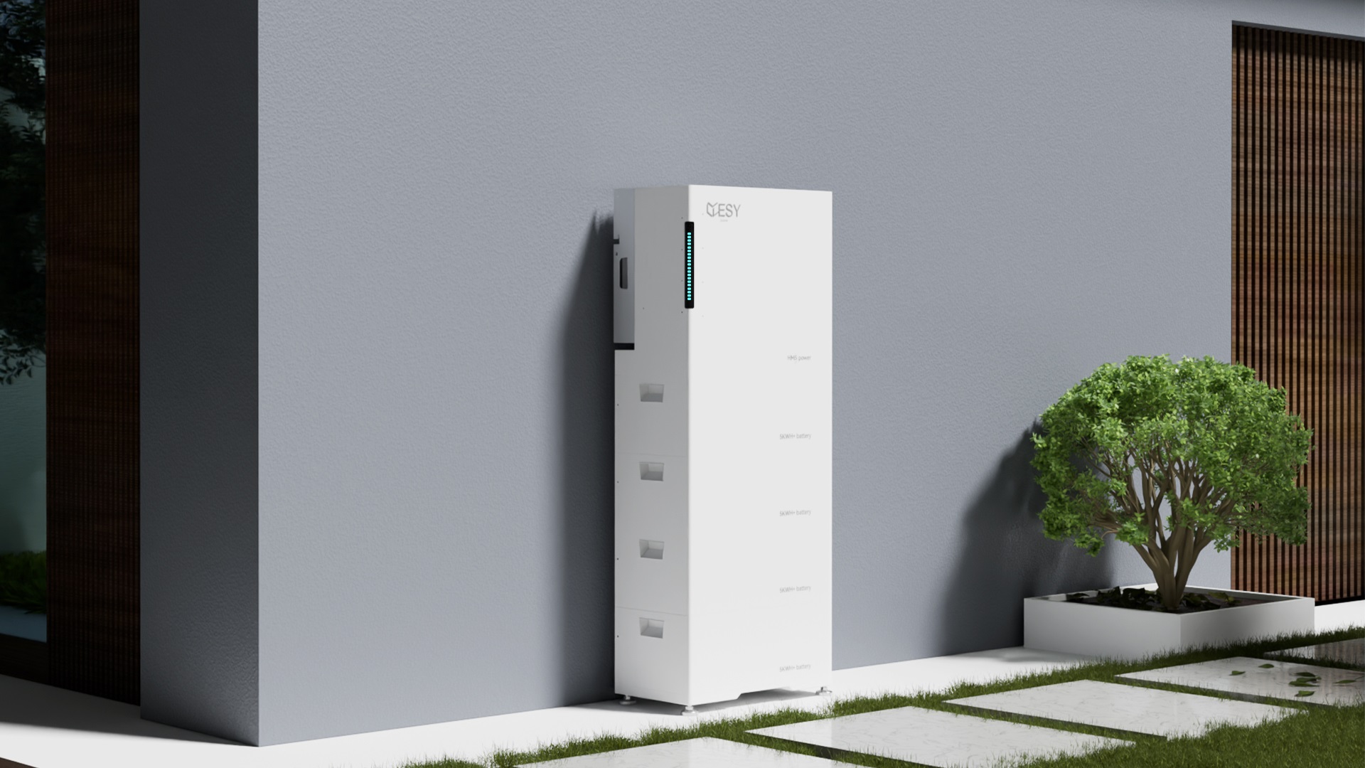 - 30.72kWh battery bank (6 x 5kWh+ modules + base)